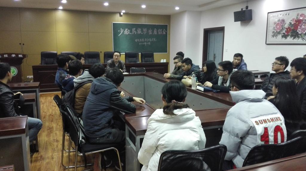 2015年12月9日中午13:00,2014级辅导员童老师主持召开了我院少数民族学生座谈会,全体少数民族学生参加了此次会议。